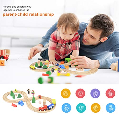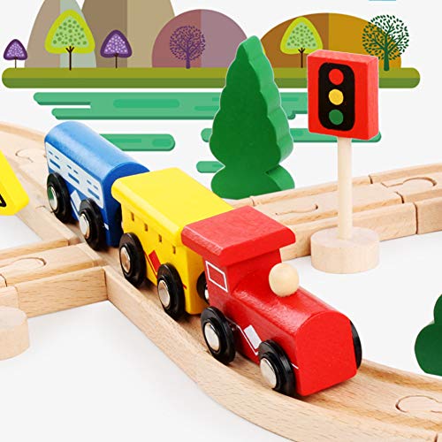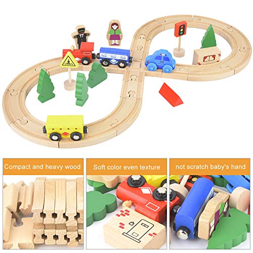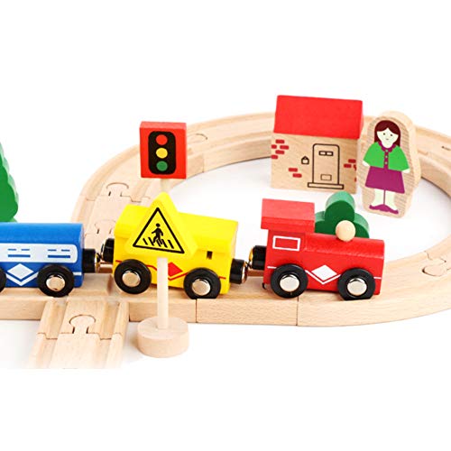 【Premium houtmateriaal】 Kies compact en zwaar hout, zachte kleur, gelijkmatige textuur, geen geur, geen braam, geen krassen op baby’s hand. Verschillende spoorvormen, meerdere treinen, verdikt en duurzaam, niet gemakkelijk te ontsporen.