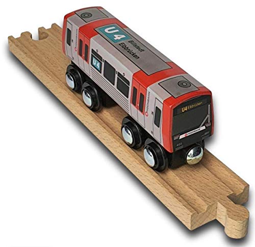Houten metro lijn U4. Geschikt voor alle gangbare houten rails. Door magneten aan beide zijden kunnen de houten U-banen aan elkaar worden gekoppeld.